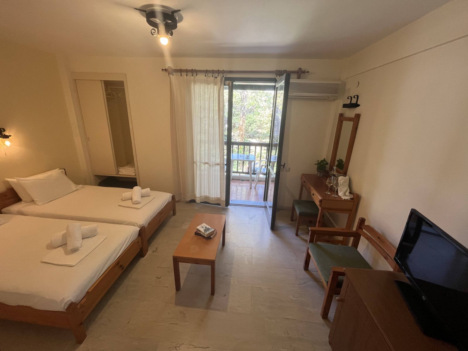 Сите соби вклучуваат сопствена бања, телевизор од 28-32 инчи, телефон, фрижидер и клима уред.