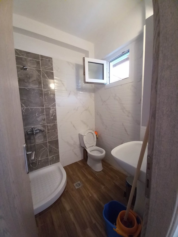 1/4 СТУДИО БР.1 - Се наоѓа на приземје, има заграден дел од дворот кој го користи како тераса. Студиото е опремено со кујна со голем фрижидер и решо, WC, два дупли кревети, тв и клима.