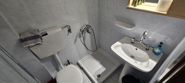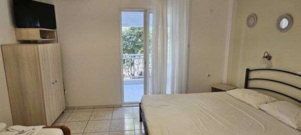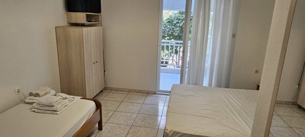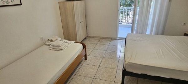 Студиото се наоѓа на прв кат.Има еден дупол кревет комотен за спиење на 2 лица и еден поединечен кревет кој се додава до дуплиот кревет наменет за дете или возрасен.Од спротива има еден поединечен кревет за 1 лице.Има плакар за алишта .Кујната е опремена со аспиратор, плотна со две рингли,мал фрижидер со комора и комлетен кујнски инвентар.Има маса за ручавање, ТВ и клима уред.Има сопствено купатило и ВЦ. Студиото излегува на тераса со маса и столици.