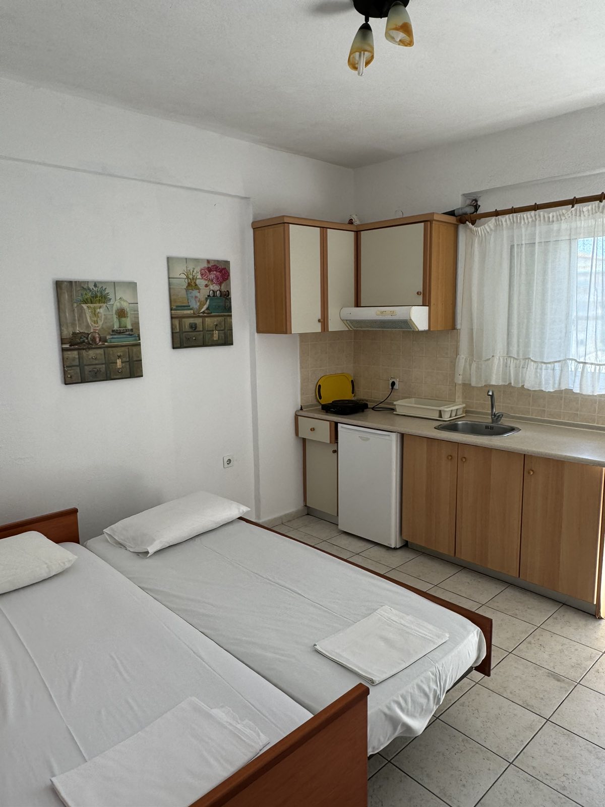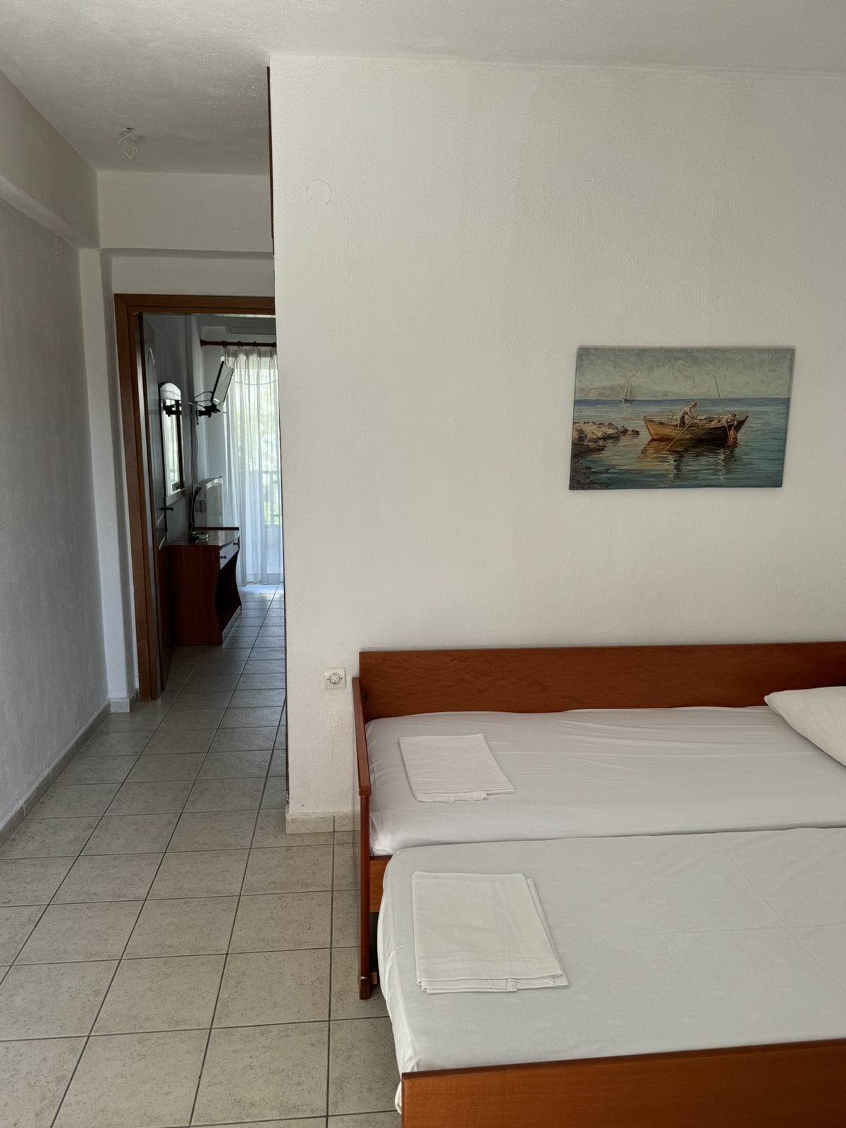 - Апартмани 1/3+1 – опремена кујна со еден единечен кревет (85x190cm) кој има фиока на развлекување (75x180cm), одделена спална соба со брачен кревет (135x195cm), ТВ, бања, тераса.